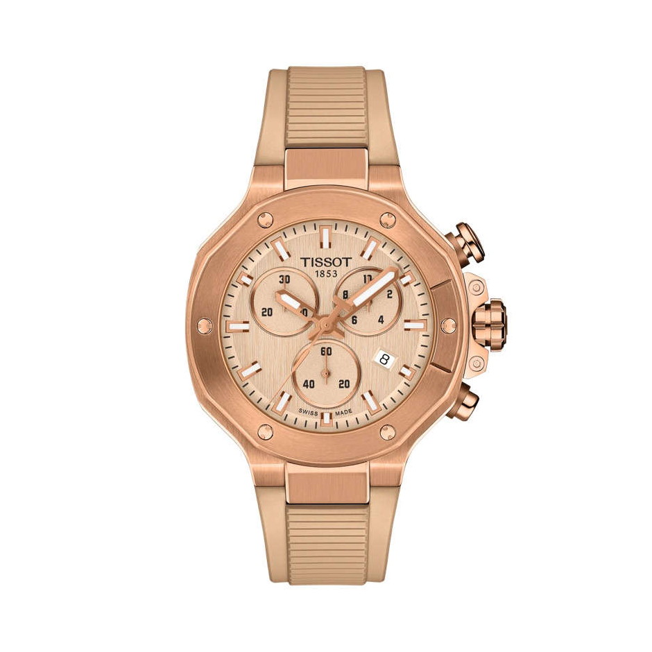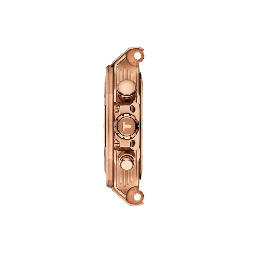 クオーツ・クロノグラフ・ムーブメントを搭載したこの時計は、あなたを自由への道へと誘います。 ユニークなデザインと38mm径がコレクションのアイデンティティに新たな一面を加えました。正確なタイミングにフォーカスし、モータースポーツへの情熱を反映しています。 TISSOTはモーターサイクルレースとのパートナーシップからインスピレーションを得て、モーターサイクルのダイナミズムとスポーツの情熱を反映した時計をつくりました。 T-Raceコレクションは、着用者をメカニカルな環境に浸らせ、スピリットを目覚めさせます。ベゼルはブレーキディスクを、プッシャーはハンドルバーからインスピレーションを得ており、ケースサイドにはエンジンの冷却フィンが再現されています。この時計は10気圧(100m)防水で、クォーツ・クロノグラフ・ムーブメントを搭載しています。 この38mmバージョンのTISSOT Tレースクロノグラフは、316Lステンレススティール製ケースを採用しています。傷のつきにくい無反射サファイアクリスタルを採用し、堅牢性を高めています。