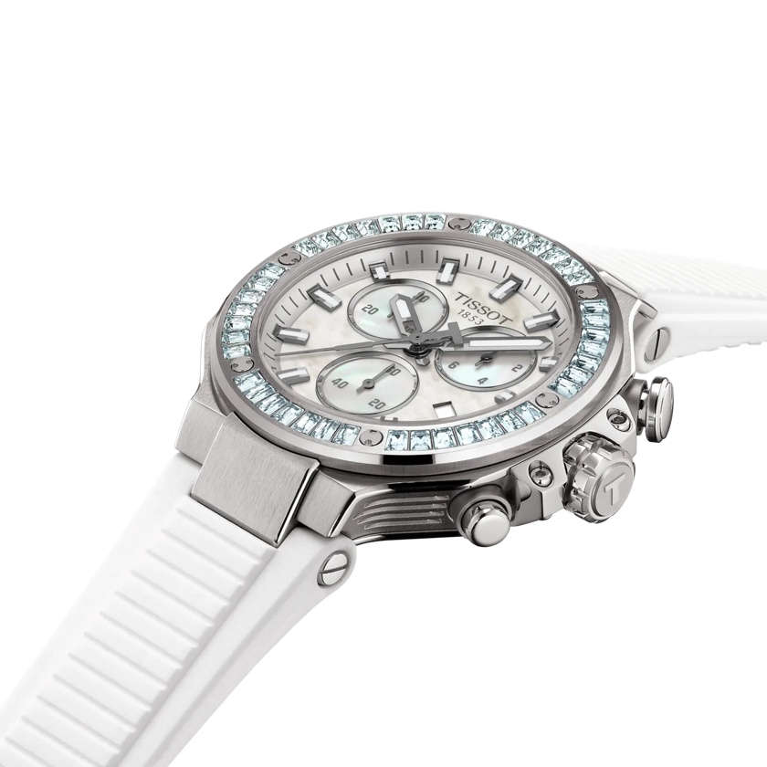 クオーツ・クロノグラフ・ムーブメントを搭載したこの時計は、あなたを自由への道へと誘います。 ユニークなデザインと38mm径がコレクションのアイデンティティに新たな一面を加えました。正確なタイミングにフォーカスし、モータースポーツへの情熱を反映しています。 TISSOTはモーターサイクルレースとのパートナーシップからインスピレーションを得て、モーターサイクルのダイナミズムとスポーツの情熱を反映した時計をつくりました。 T-Raceコレクションは、着用者をメカニカルな環境に浸らせ、スピリットを目覚めさせます。ベゼルはブレーキディスクを、プッシャーはハンドルバーからインスピレーションを得ており、ケースサイドにはエンジンの冷却フィンが再現されています。この時計は10気圧(100m)防水で、クォーツ・クロノグラフ・ムーブメントを搭載しています。 この38mmバージョンのTISSOT Tレースクロノグラフは、316Lステンレススティール製ケースを採用しています。傷のつきにくい無反射サファイアクリスタルを採用し、堅牢性を高めています。