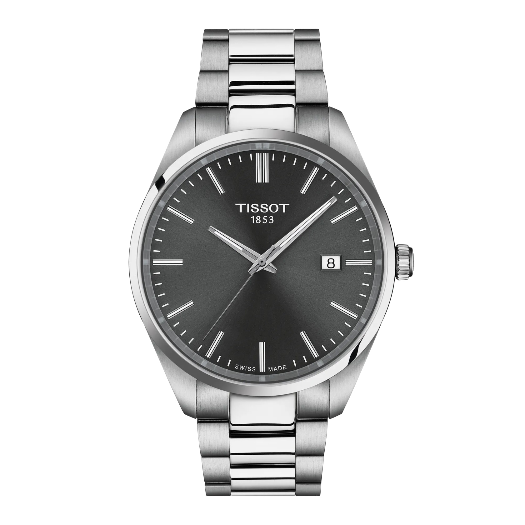シーンを問わずどこに行くにも身に着けたいシンプルなクラシックウォッチ、Tissot PR 100[ティソ PR 100]。 その名に込められた意味は、”Particularly Robust and 100 m water-resistant ”(どこまでも頑丈で100 m防水)。 それは時計の究極の実用性を追求したコレクションです。 シンプルなダイアルに、視認性の高いバーインデックスとバー針、そしてデイト表示を採用し、時計本来の機能を前面に押し出したミニマルなデザインに仕上げています。 シンプルながら、クラシカルでエレガントな印象を与えているのが、鏡面仕上げのコーナー、ヘアライン仕上げのケースサイドとラグなど、細部まで上質な仕上げを施しています。