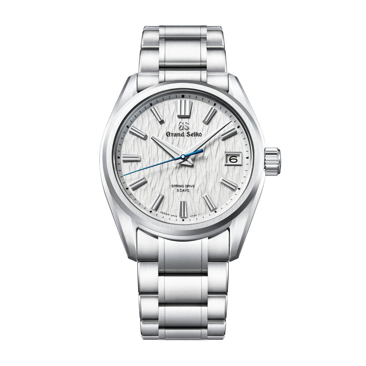 グランドセイコーのスプリングドライブが生まれる「信州 時の匠工房」の周辺には、日本有数の美しい白樺林が広がっています。SLGA009は、スプリングドライブ独特の流れるような秒針の動きに呼応するように、静かな白樺林の雰囲気を丁寧に再現した型打ちのダイヤルを備えています。