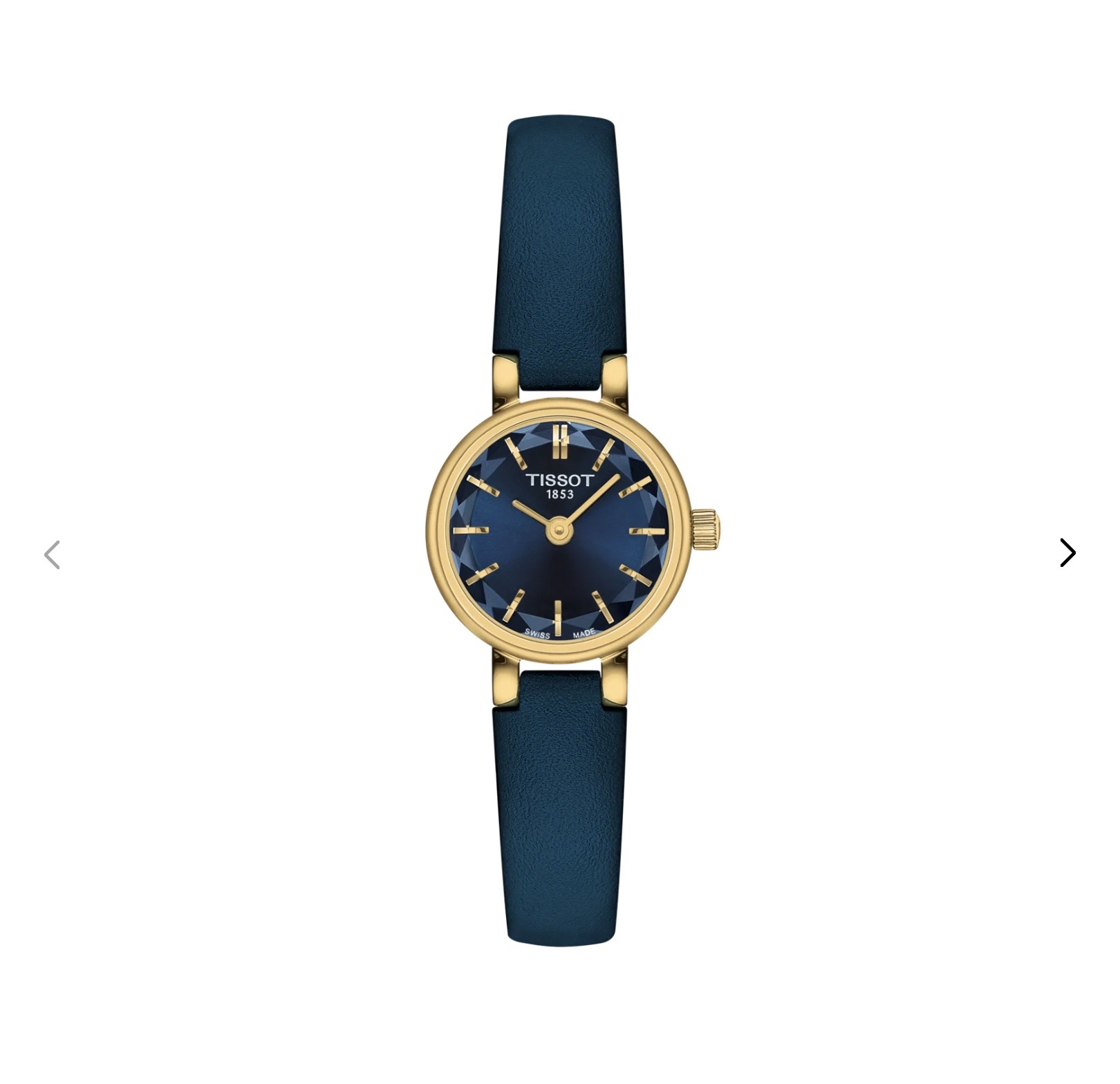 ファセット加工のサファイアガラス、深みのあるブルーの文字盤、それに調和したレザーストラップを備えたこの素敵なモデルで、洗練された上品な装いをお楽しみください。
