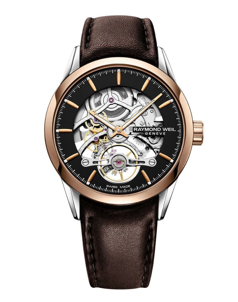 スケルトンダイアルによって、レイモンド ウェイル専用キャリバー・RW1212の美しい動きを楽しむことができます。ステンレススティール製のケースにはローズゴールドPVD加工を施し、ブラウンのカーフレザーストラップを合わせています。 2007年に誕生したフリーランサーは、エレガントでありながらカジュアルにも見える現代的かつ都会的な仕上がりで、オン・オフどちらにも似合う洗練さを持っています。異彩を放つ印象的なデザインで、人と違うクリエイティブな自分を演出したいときに身に着けたいタイムピースです。
