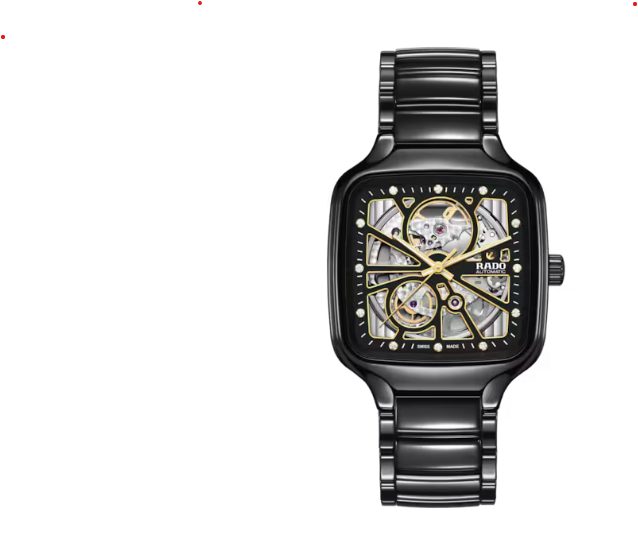 ラドーTrue Square Automatic Open Heartウォッチで芸術的技巧と精密性の完璧な融合を体験しましょう。この注目のタイムピースは、魅力的なオープンハートのデザインになっていて、最大80時間パワーリザーブを備えた自動巻ラドーキャリバーR734の複雑に入り組んだ動きが楽しめるようになっています。ケースサイズは38 mmで、ポリッシュ仕上げブラック ハイテクセラミックス製のケースとクラウンが、オシャレでコンテンポラリーな魅力を醸し出しています。両面反射防止ARコーティングのフラットサファイアクリスタルは、並外れた透明感を実現しています。ブラックのダイアルはイエローゴールドカラーの面取りで強調され、12個のダイヤモンドがラグジュアリーと洗練された感触を付け加えています。イエローゴールドカラーの針は、ホワイトベニアおよびホワイトSuper-LumiNova®が施され、素晴らしい視認性が保証されているとともに、繊細にエレガントさを付け加えています。そして全体を完璧なものに仕上げているのがポリッシュ仕上げブラック ハイテクセラミックスのブレスレットで、快適な着用感と耐久性の両方を実現しています。