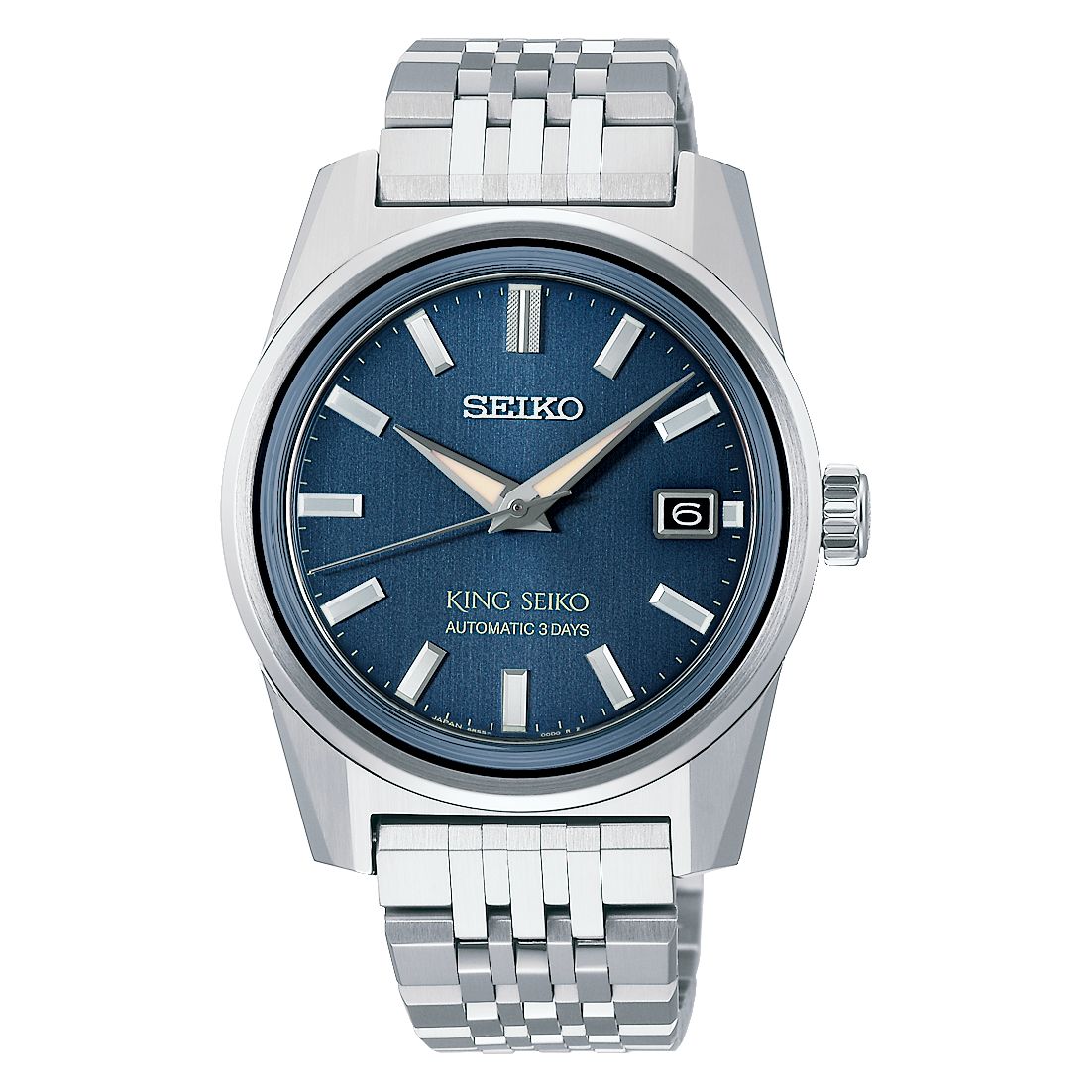 ダイヤルカラーは、キングセイコーが国産機械式時計の進化を牽引した1960~70年代のカルチャーから着想を得て、チャコールブラック、インディゴブルー、オリーブグリーンの3種類を採用しています。ダイヤルには縦方向のヘアライン仕上げを施すことで、経年変化したような味わいを表現しました。