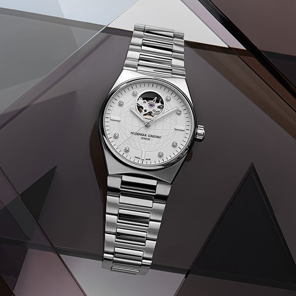 12時位置にフレデリック・コンスタントの象徴的なデザイン「Heart Beat(ハートビート)」を配し、時計の心臓である機械式ムーブメントの鼓動を楽しむことができます。