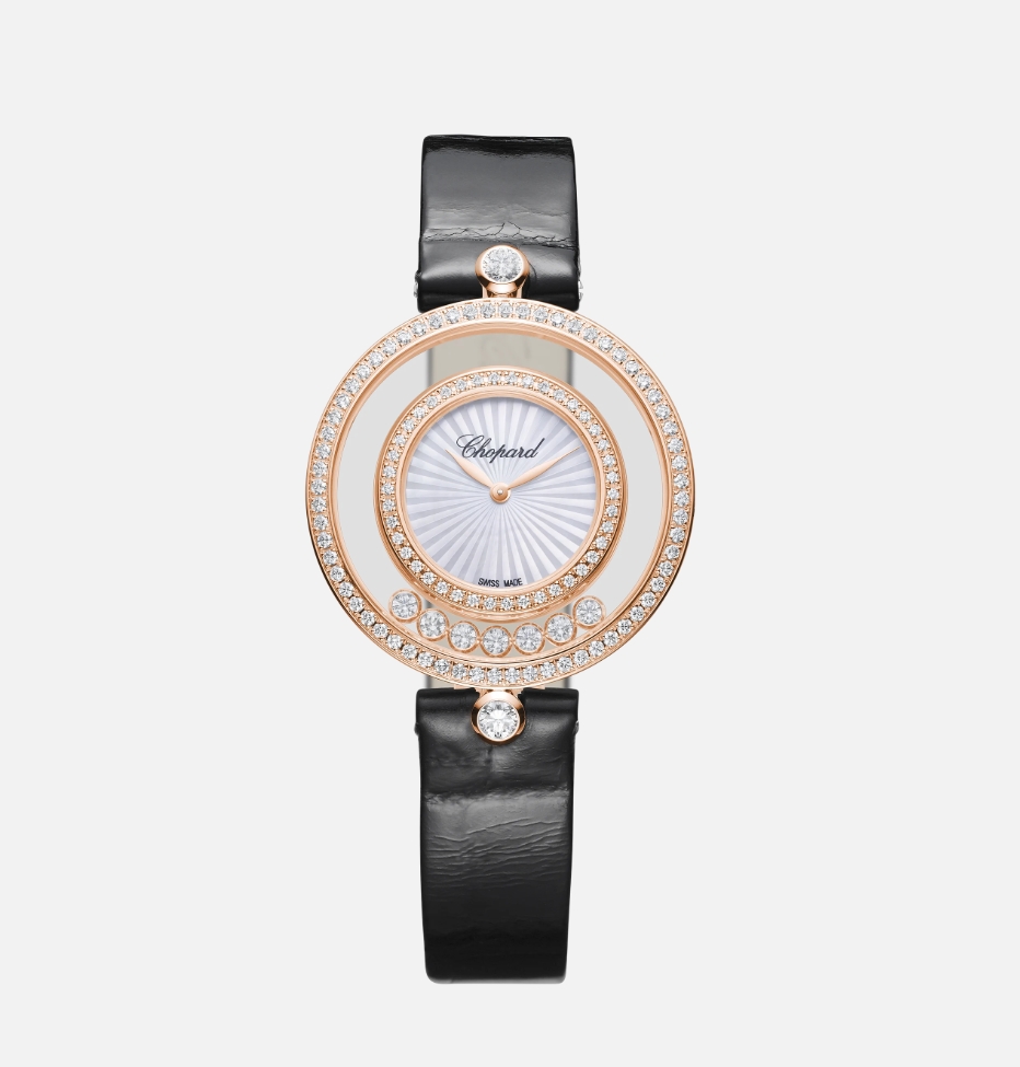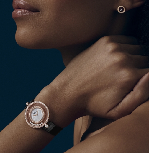 1976年に最初のハッピーダイヤモンド ウォッチが制作されて以来、ムービングダイヤモンドは、このコレクションに喜びと輝きをもたらしてきました。ハッピーダイヤモンド ウォッチは、自立した精神を陽気で軽やかなイメージに仕上げた最初のアイテムで、ここからコレクションは様々な形に変化を遂げていきます。2枚の透明なサファイアクリスタルの間でクルクルと揺れ動くハッピーダイヤモンドは、ダイヤモンドが素肌に直接触れているかのような印象をもたらします。手首の上でダイヤモンドが踊るように揺れ動くことで、遊び心がエレガントに表現されます。 Little Diamonds Do Great Things