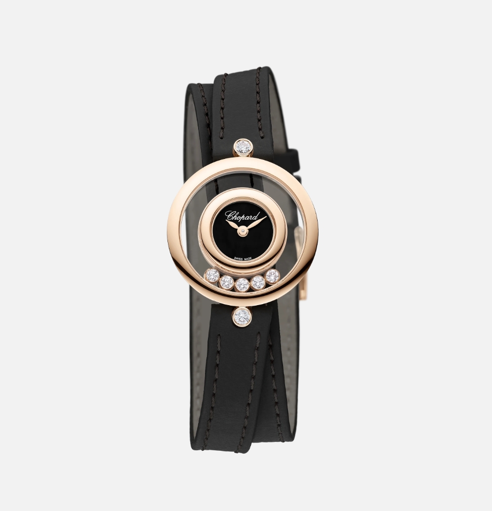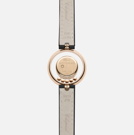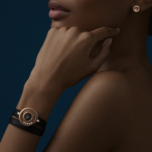 1976年に最初のハッピーダイヤモンド ウォッチが制作されて以来、ムービングダイヤモンドは、このコレクションに喜びと輝きをもたらしてきました。ハッピーダイヤモンド ウォッチは、自立した精神を陽気で軽やかなイメージに仕上げた最初のアイテムで、ここからコレクションは様々な形に変化を遂げていきます。2枚の透明なサファイアクリスタルの間でクルクルと揺れ動くハッピーダイヤモンドは、ダイヤモンドが素肌に直接触れているかのような印象をもたらします。このウォッチに備えられた長く柔らかな新しいレザーストラップは、手首を二重に取り巻いて、華やかな魅力を漂わせるタイムピースの魅惑的なオーラを引き立たせています。 Little Diamonds Do Great Things