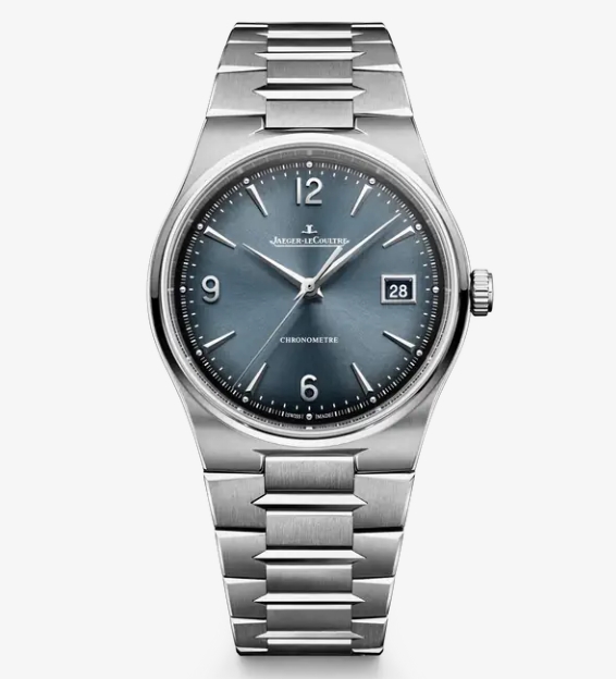 モダンエレガンスを体現する、マスター・コントロール・クロノメーター・デイト。厚さわずか8.4 mm、38 mmの磨き抜かれたプロポーションが端正な表情を描くステンレススチール製ケースに、ブラッシュとポリッシュ、2種の仕上げを組み合わせた一体型メタルブレスレットが、その洗練された造形を際立てます。ブルーグレーのグラデーションに彩られたダイヤルにはサンレイブラッシュ仕上げが施され、上質なエレガンスの佇まいを醸し出しています。利便性に優れたデイト機能を備え、心臓部には70時間のパワーリザーブを誇るマニュファクチュール製キャリバー899を搭載。さらに、完成状態の時計を実際の着用環境下で試験するジャガー・ルクルト独自のHPG認証により、COSC基準にとどまらない高い精度が保証されています。