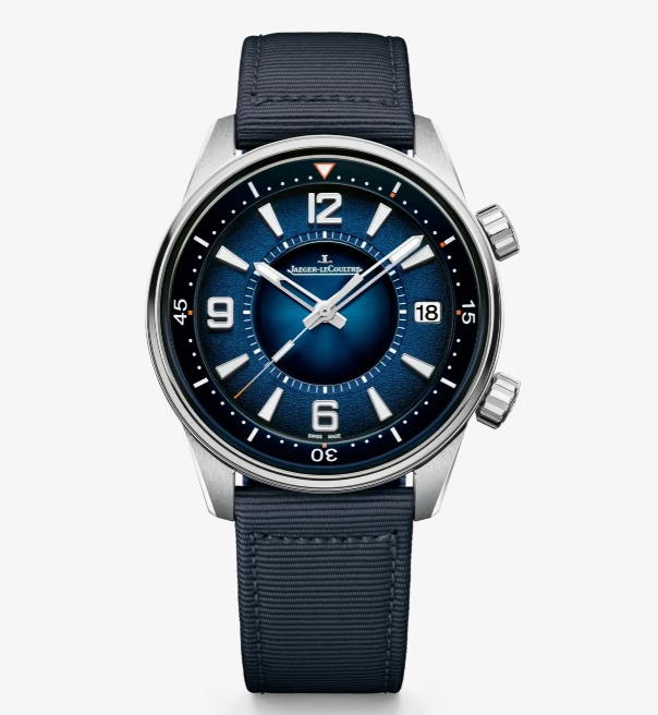 ポラリスコレクションのスタイルを大切にしながらデザインされたこのポラリス・デイトのラッカー仕上げダイヤルは、圧倒的な存在感を放つ美しいブルーのグラデーションが特徴です。オパーリン仕上げのベゼル、グレイン仕上げのインデックスサークル、サンレイブラッシュ仕上げの中央といった3段階の仕上げを施したこのダイヤルは、インナーベゼルのオレンジの三角形、インデックス、印象的なシルエットの数字、先端にスーパールミノヴァ®を施したスケルトン加工針など、時計の異なるパーツにコントラストを生み出しながら、それぞれの要素を美しく際立たせています。サファイアケースバックの内側には、開発、装飾、組み立てのすべてがマニュファクチュールのひとつ屋根の下で行われているジャガー・ルクルト製キャリバー899を搭載しています。70時間のパワーリザーブを備えたこのキャリバーは、スポーツウォッチに相応しい優れた性能を発揮します。