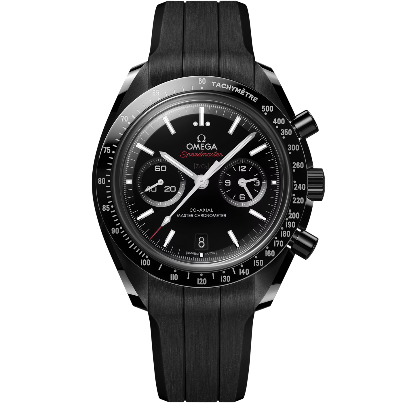 44.25mmのブラックセラミックケースとリキッドメタル™タキメータースケールを備え、精緻な仕上げが際立ちます。