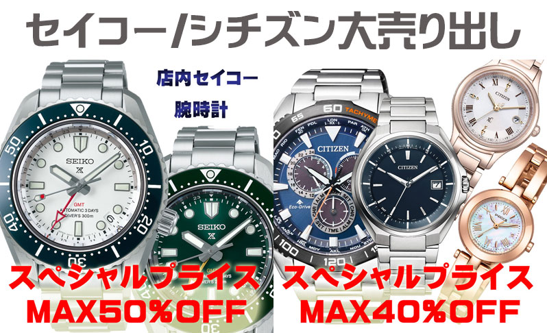 ☆セイコー・シチズン・カシオなど「20~50%OFF」特別お買得コーナー開催