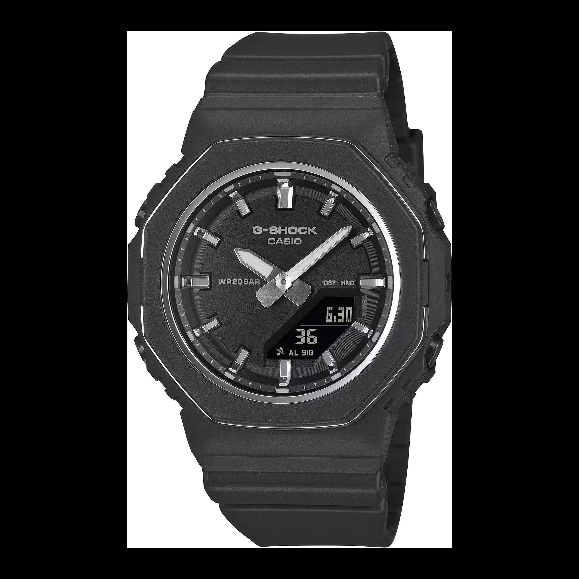 G-SHOCKのレディースモデル。バランスの良い40.5㎜のケースに、軽量で扱いやすい樹脂バンド。20気圧防水であり、カレンダー機能やストップウォッチ機能も備えている。