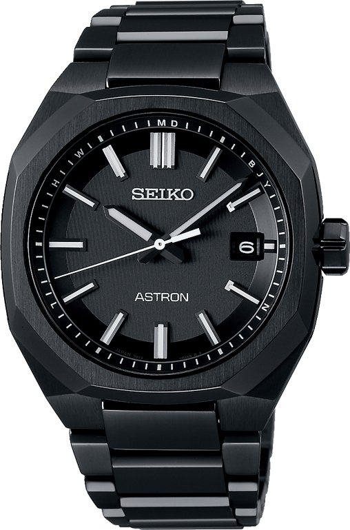 エッジの効いたソリッドなチタンケースと力強い金属多角縁が精悍な雰囲気を演出。