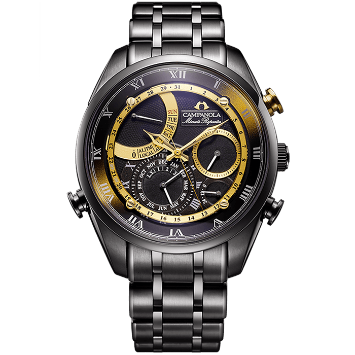暗闇でも透明感のある音色の鐘が時刻を知らせるミニッツリピーターです。