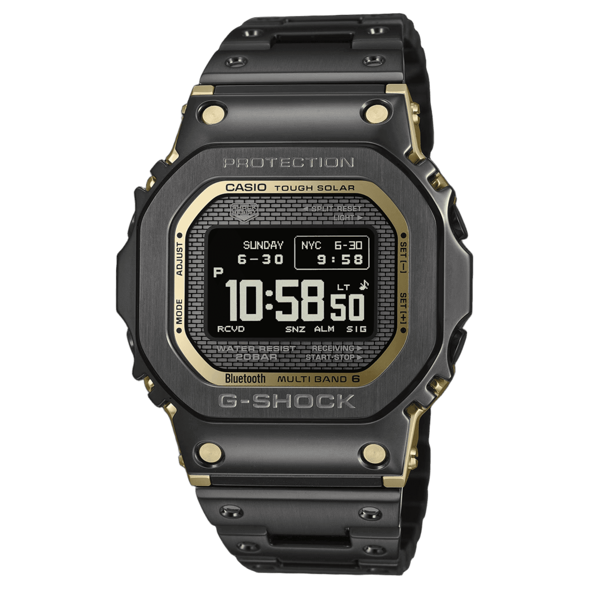 ベゼルとセンターケースを上下で連結した構造を開発。ケースサイドから見える造形が構造の美しさを強調。フルメタルながらG-SHOCKの耐衝撃基準をクリアし、気密性に優れたスクリューバックケースも採用しています。