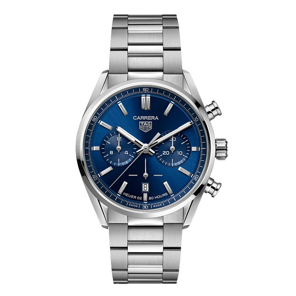 42mmポリッシュ/サテン仕上げステンレススティール製ケース、ロジウムプレートのインデックスと針、輝くブルーサンレイダイヤルが特徴の圧倒的なタイムピース。 この由緒あるタグ・ホイヤー カレラが、自信に満ちたエレガントなスタイルでスイスならではの高精度な計時を実現します。