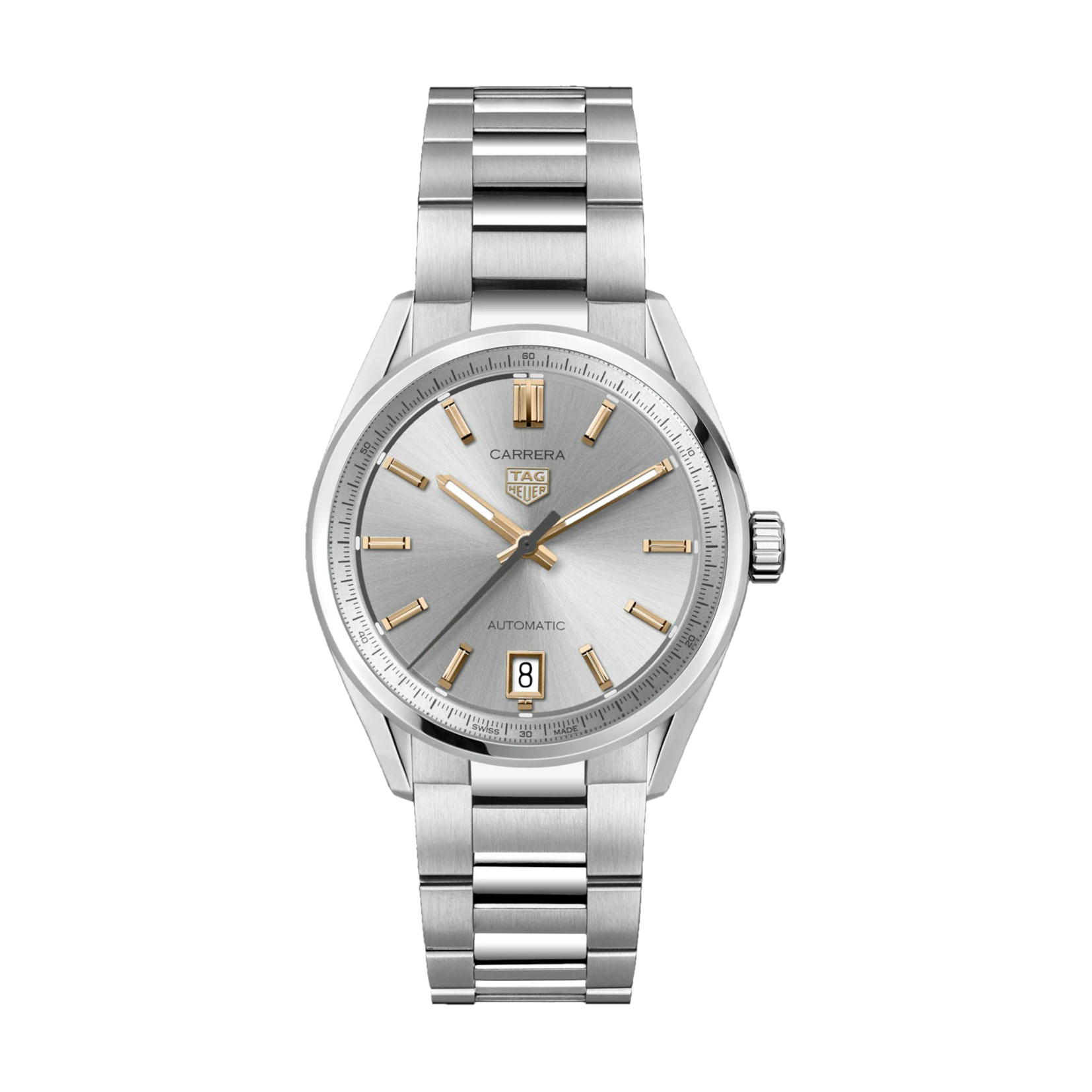 より薄くなったラグを備えた、超エルゴノミックなタグ・ホイヤー カレラ デイト。エレガンスとコンフォートの完璧なバランスを湛えたウォッチです。堅牢なステンレススティールのデザインに、フランジに沿って施されたリングの明暗のグラデーションといったディテールが、高貴な雰囲気を与えています。素晴らしきクラシック