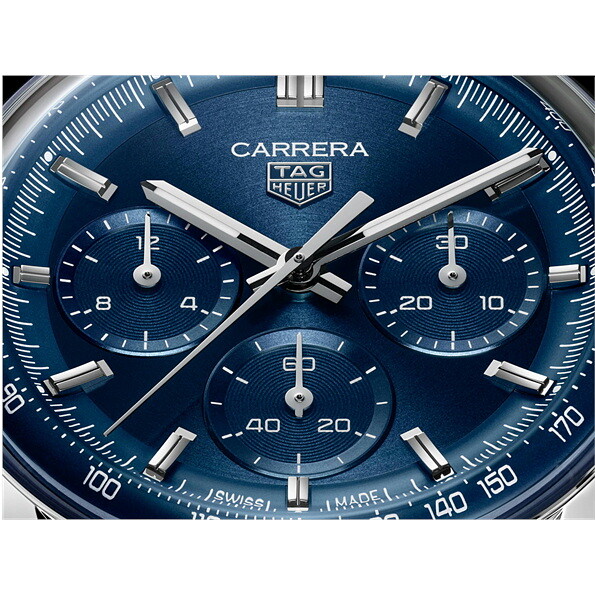 サーキュラーサテン仕上げのブルーダイヤルが目を引く、圧倒的な存在感と洗練されたバランス感覚を兼ね備えた、41mmのタグ・ホイヤー カレラ クロノグラフ。自社製自動巻キャリバー TH20-01を搭載し、タイムレスで汎用性の高いデザインの中にモータースポーツ精神を体現する、カレラが誇る高い精度とパフォーマンスを讃えるトリビュートモデルです。