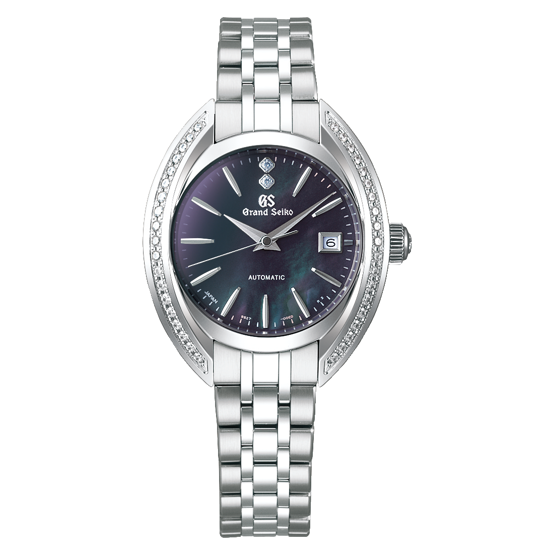 ガラスサイドの大きなアーチにダイヤモンドをセッティングしている部分がこのモデルの象徴といえます。トップを揃えながら複数のサイズの石を組み合わせて立体的にセッティングすることで、あらゆる角度の光を取り込み、流れるような美しい輝きを放ちます。さらに石留めした後には、ダイヤモンドの回りのケース部分にグランドセイコーならではの研磨を施し、歪みない金属の鏡面とシャープなラインがダイヤモンドと完璧に調和します。熟練した職人による匠の技で、貴石を傷つけず平滑に磨き上げています。