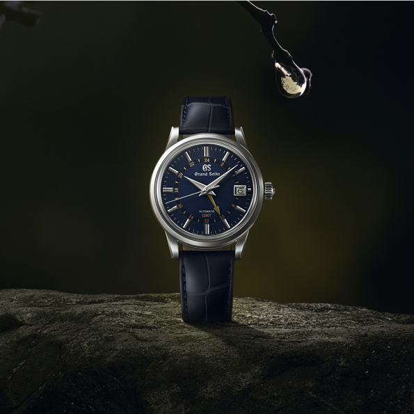 秋の季語「月雫」から着想を得て、月の光を浴びて輝く儚い露をダイヤルに表現したクラシックスタイルのGMT機能付きモデルです。モダンな幾何学螺旋模様は、光の角度によって表情を変え、奥行きと動きを感じさせます。精緻なパターンが、ダイヤルに上質な立体感を与えます。搭載するムーブメントはメカニカル「キャリバー9S66」。最大巻上時約72時間(約3日間)の持続時間を確保しており、第二時刻を同時に指し示すGMT機能を備えています。ゴールドカラーの24時針が織りなす上品なクラシックスタイルに、モダンなダイヤルデザインが調和し、グランドセイコーならではの優雅さを演出します。