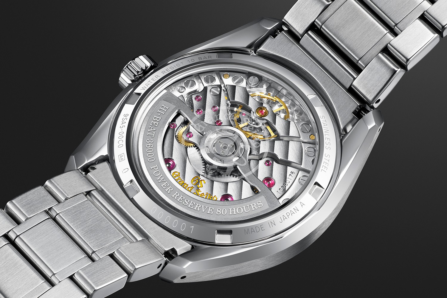 ムーブメントは「9SA5」を採用。デュアルインパルス脱進機を搭載することにより、トルク(回転させる力の大きさ)をムダなくテンプに伝達することが可能です。ぜんまいをツインバレルに格納することで、80時間のパワーリザーブを実現しました。裏面から見えるムーブメントも美しく、ローターが肉抜きされていることにより、細部まで鑑賞できます。