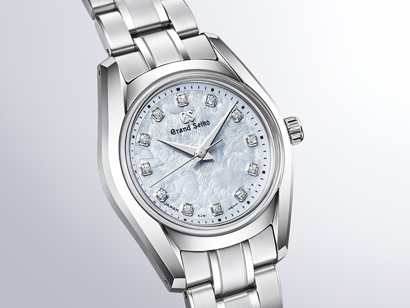 桜とともに光り輝く春の柔らかな風を表現した季語「風光る」をイメージしたスモールサイズのクオーツモデル。1967年発売のグランドセイコー史上初の自動巻機械式モデル「62GS」を現代的にアレンジした「62GS現代デザインモデル」をベースとし、日本特有の季節の移ろいをダイヤルで表現したモデルです。ベゼル(ガラス縁)のない構造によって広々と見えるダイヤルや、ザラツ研磨によって実現したシャープな多面体からなるケースが魅力です。ダイヤルは、桜の咲き渡る春の陽光の中を、爽やかな風が花びらを揺らし、きらめきながら吹きわたる情景を表現。ムーブメントは、年差±10秒のクオーツ「キャリバー4J51」を採用しました。