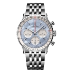 ブルー オパーリン ダイヤルがホワイトのフランジと絶妙なコントラストを演出し、大胆でありながらも洗練された魅力を生み出しています。ロジウムプレートの針とインデックスにはスーパールミノバ®が塗布され、どんな照明条件下でも完璧な視認性を確保してくれるので安心です。