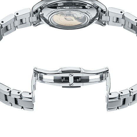 柔らかなアイボリーの文字盤が、どんなスタイルにも自然に馴染みます。機械の動きが楽しめる「セミスケルトン」は、時計に愛着を持つきっかけになるでしょう。初めての一本にも、長く愛せる特別な一本をお探しの方にもぴったりです。