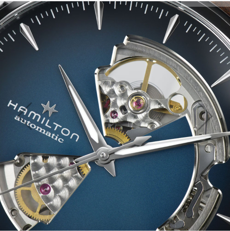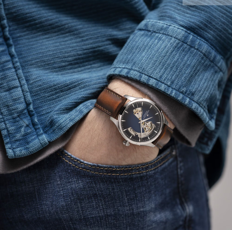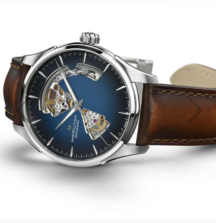 文字盤の奥で、精密なムーブメントが静かに鼓動する「ジャズマスター オープン ハート」。