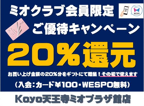 お買上げ金額20%分の商品券を進呈。その場で使用できます。
