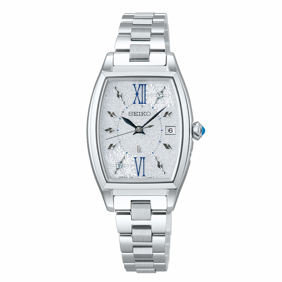 光に照らされて煌めく雪景色を思わせるフローズン加工のダイヤルに、雪の結晶をモチーフにした繊細なデザインをあしらったモデルです。