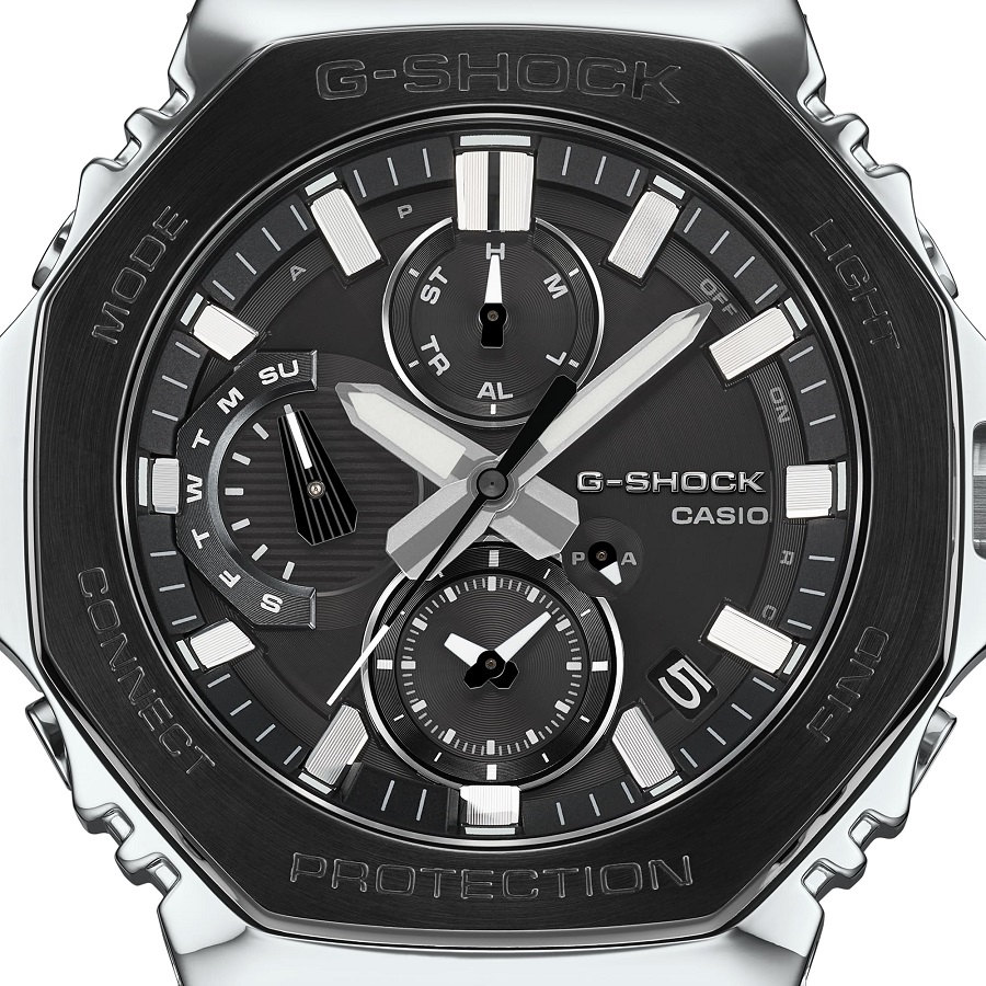 シルバーの中に際立つブラックがG-SHOCKの強さを強調しつつ、幅広いスタイルに合わせやすいモノトーンデザインとなっています。