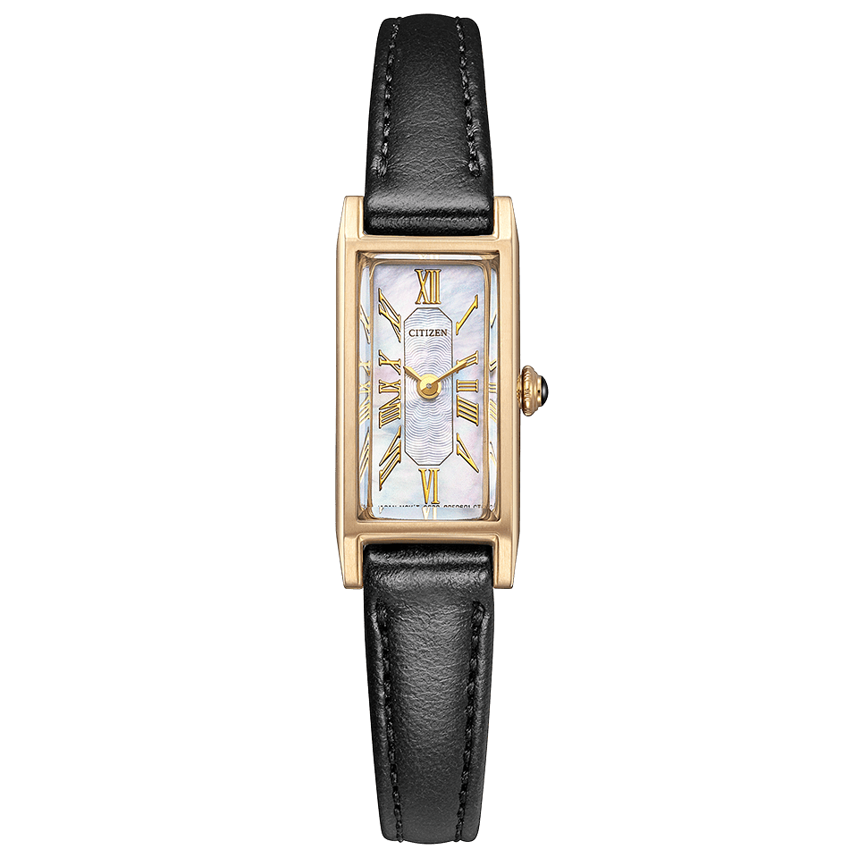 スリムな形状が人気のスクエアケースに、美しい白蝶貝文字板を合わせた限定モデル。文字板中央にギョーシェ彫りを思わせるパターンを施し、高級感と華やかさをきわだたせました。