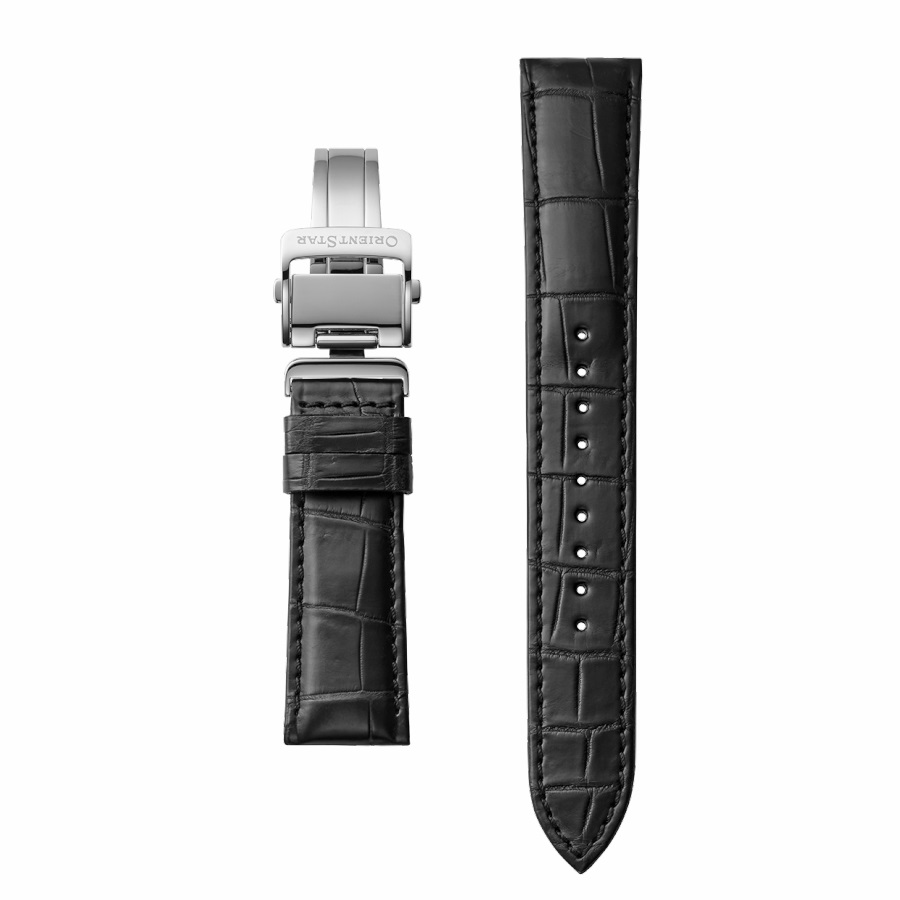 その他特徴 自動巻 (手巻付)、日付表示あり、パワーリザーブ表示機能、シースルーバック、22石、秒針停止装置付き、替えバンド付(中留タイプ/プッシュ三つ折式、材質/本ワニ皮革)
