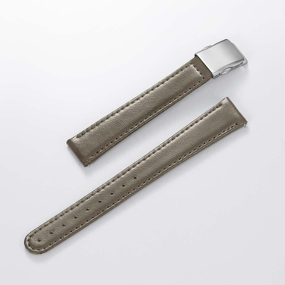 クールなエターナルプラチナ。替えバンドには環境にやさしいECOPET®のカーキをセレクト。すっきりとマニッシュな雰囲気をかなえる組み合わせです。