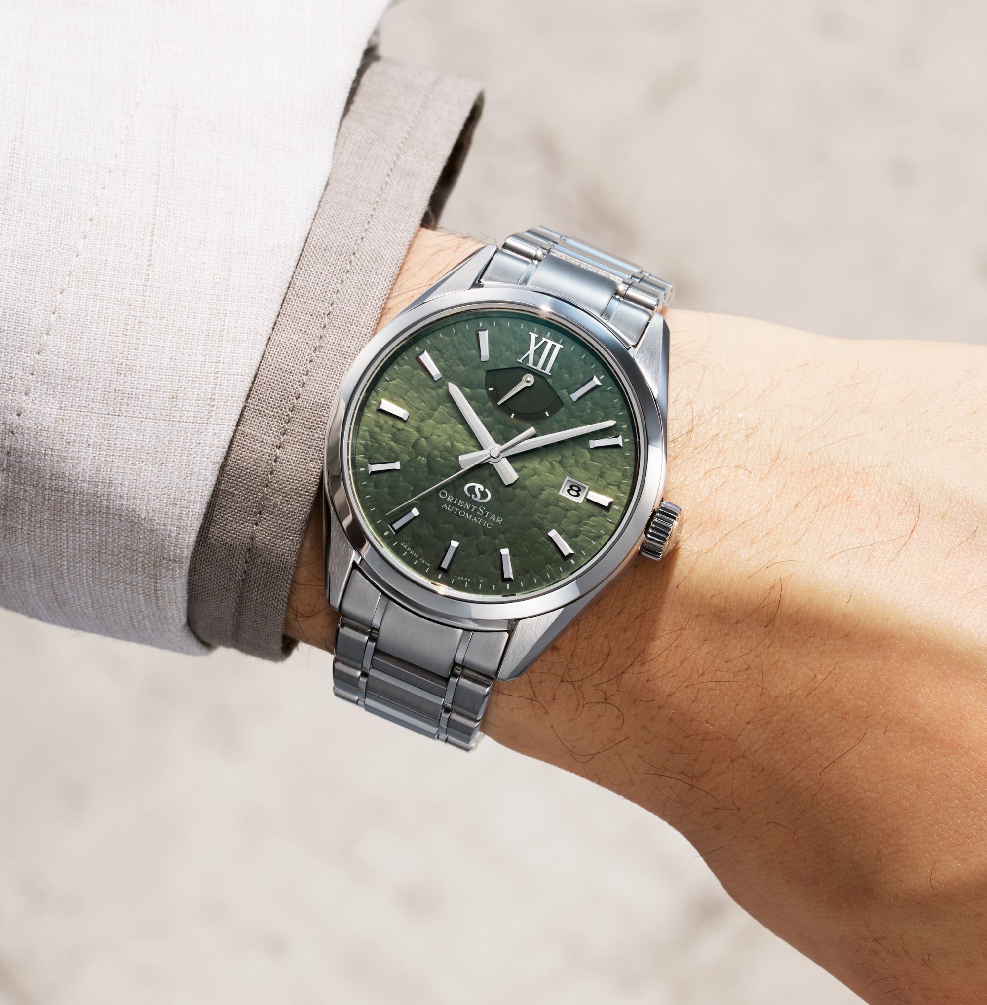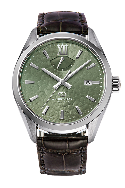 グリーン文字板は、前作のブルー文字板と同様にペルセウス座流星群をイメージした繊細な型打模様に光学多層膜技術を活用し、見る角度によって色や模様が美しく移ろうデザインが特長です。