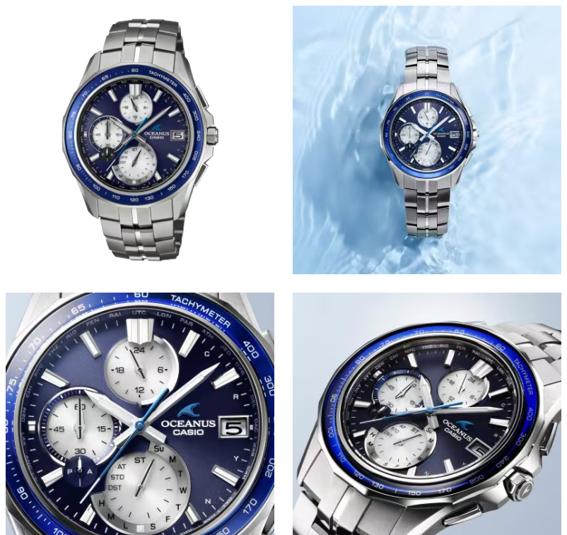 上質な仕上げと薄く美しいフォルムを追求しているOCEANUS Mantaラインより、OCEANUSのブランドカラーであるブルーと上質なホワイトを採用したモデル。海を感じられるブルーと美しい輝きを放つ上質なホワイトのインダイアルを採用した爽やかなカラーリングが特徴です。インダイアルは不透過のホワイト蒸着により高発色で輝度の高いホワイトに仕上がっています。