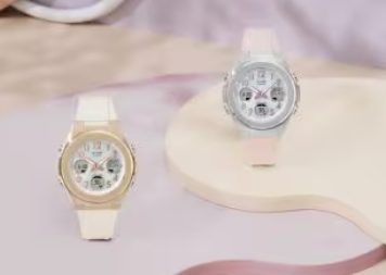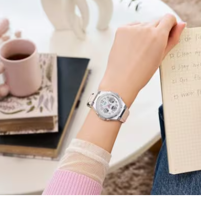 アクティブで洗練された女性に向けたBABY-G G-MS、視認性の良いアラビック数字をインデックスに取り⼊れた上品で着けやすいニュアンスカラーのモデルです。ベースはデジタル・アナログコンビネーションの電波ソーラーモデルMSG-W610、主な樹脂パーツにはバイオマスプラスティックを採用。