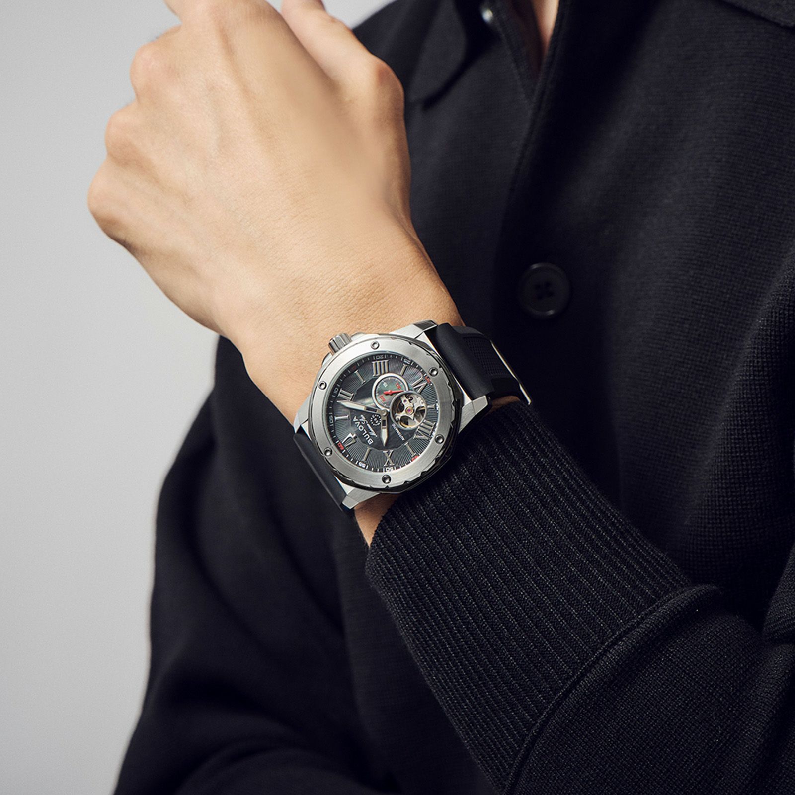 高気圧防水を備える実用時計でありながら、気品にあふれたスポーティーな表情とラグジュアリーなデザインが特徴です。文字盤の7時位置にはオープンハートを配し、機械式ならではのテンプの動きを見て楽しむことができます。150周年記念 日本限定モデルは、天然素材のため、一つ一つ異なる表情を楽しめる、黒く染め上げたマザーオブパール文字盤を採用。ブラック×シルバーカラーの落ち着いた大人の雰囲気の中に華やぎを持たせました。