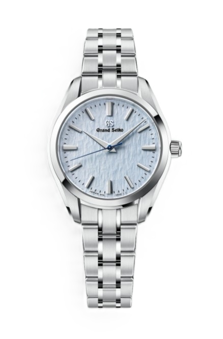 グランドセイコーのクオーツモデルの製造地であるセイコーエプソン塩尻事業所内「信州 時の匠工房」から望むことができる穂高連峰では、冬の時期になると未踏の雪原に風が刻む風雪紋を目にすることがあります。その耽美な風景に、空の色が反射した景色を写し取った「雪白ブルー」ダイヤルをあしらった、ケース径33mmの小ぶりなモデルが登場。雪と空の美しさと儚さが、匠の技によって繊細に作りこまれています。