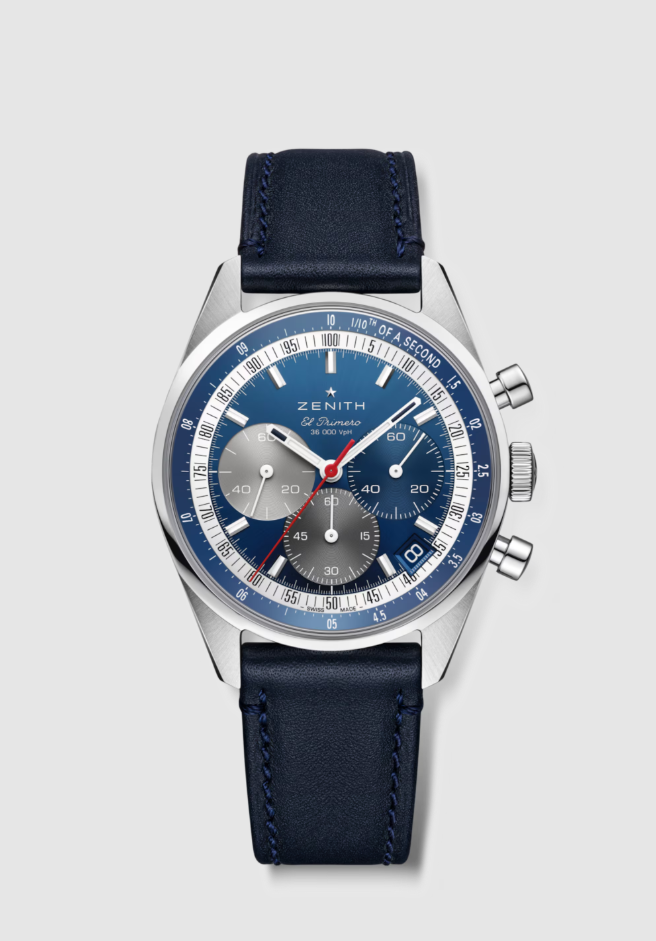 クロノマスター オリジナルは、A386と同じフォルムの38mmのスチールケースに、ブルーを採用したトリコロール文字盤を組み合わせています。ブルーカーフレザーストラップとスチールブレスレットが付属。1/10秒計測のクロノグラフ機能を備えたエル・プリメロ 3600 高振動自動巻クロノグラフ ムーブメントを搭載し、約60時間のパワーリザーブを備えています。