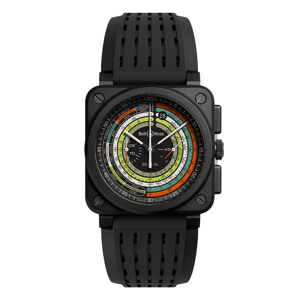本質的で軍事的な BR 03-94 クロノグラフは、4つの基本原則である、視認性、機能性、高精度、信頼性を満たすことで、実用的かつ機能的という目的を果たしています。