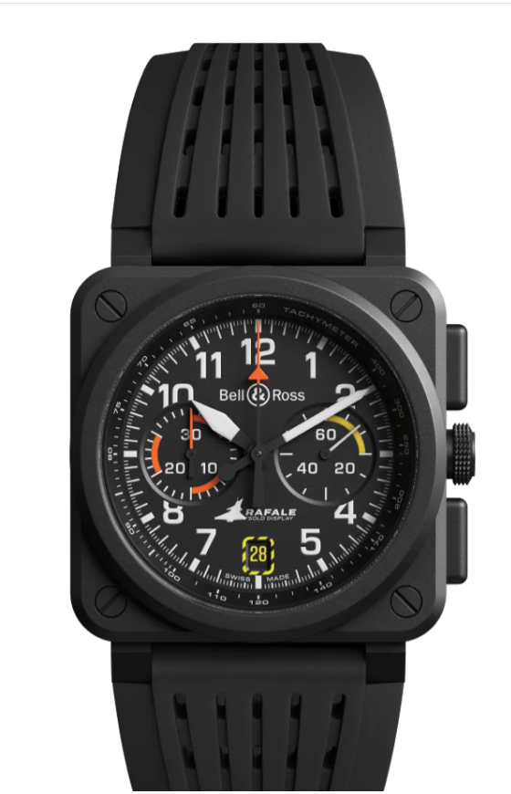 BR-03 Chrono Rafale Solo Display は、フランス航空宇宙軍の公式デモンストレーション ユニットである「ラファール・ソロ・ディスプレイ」の卓越したパフォーマンスに敬意を表しています。このモデルは Bell & Ross と航空の世界との強い絆を具現化しています。