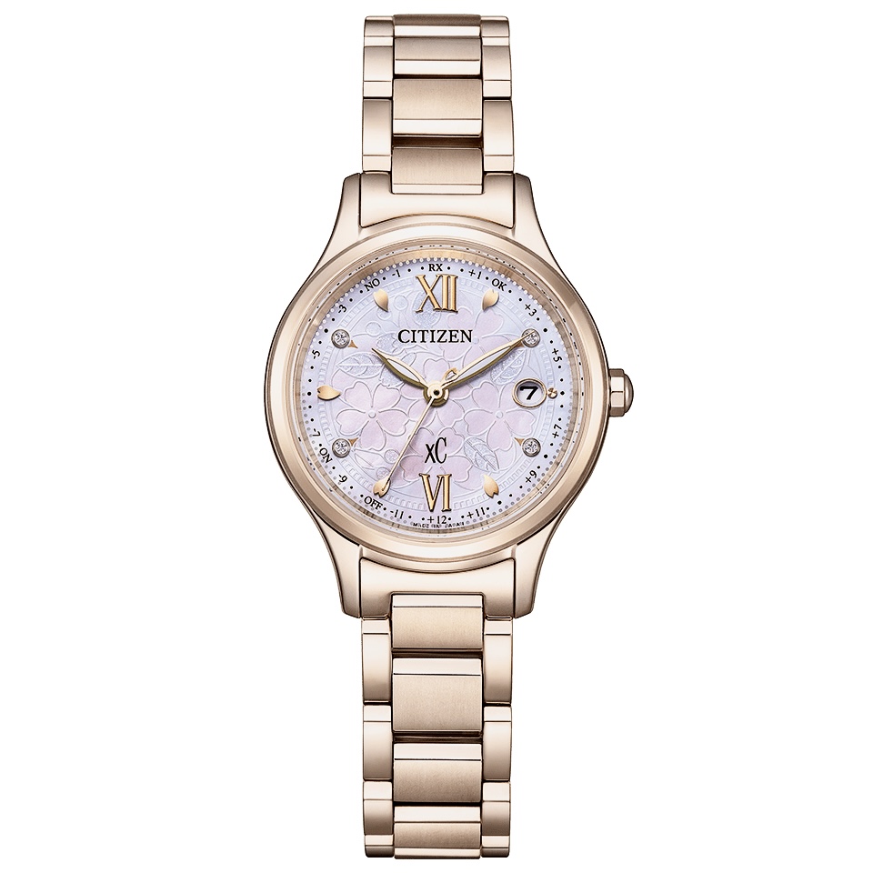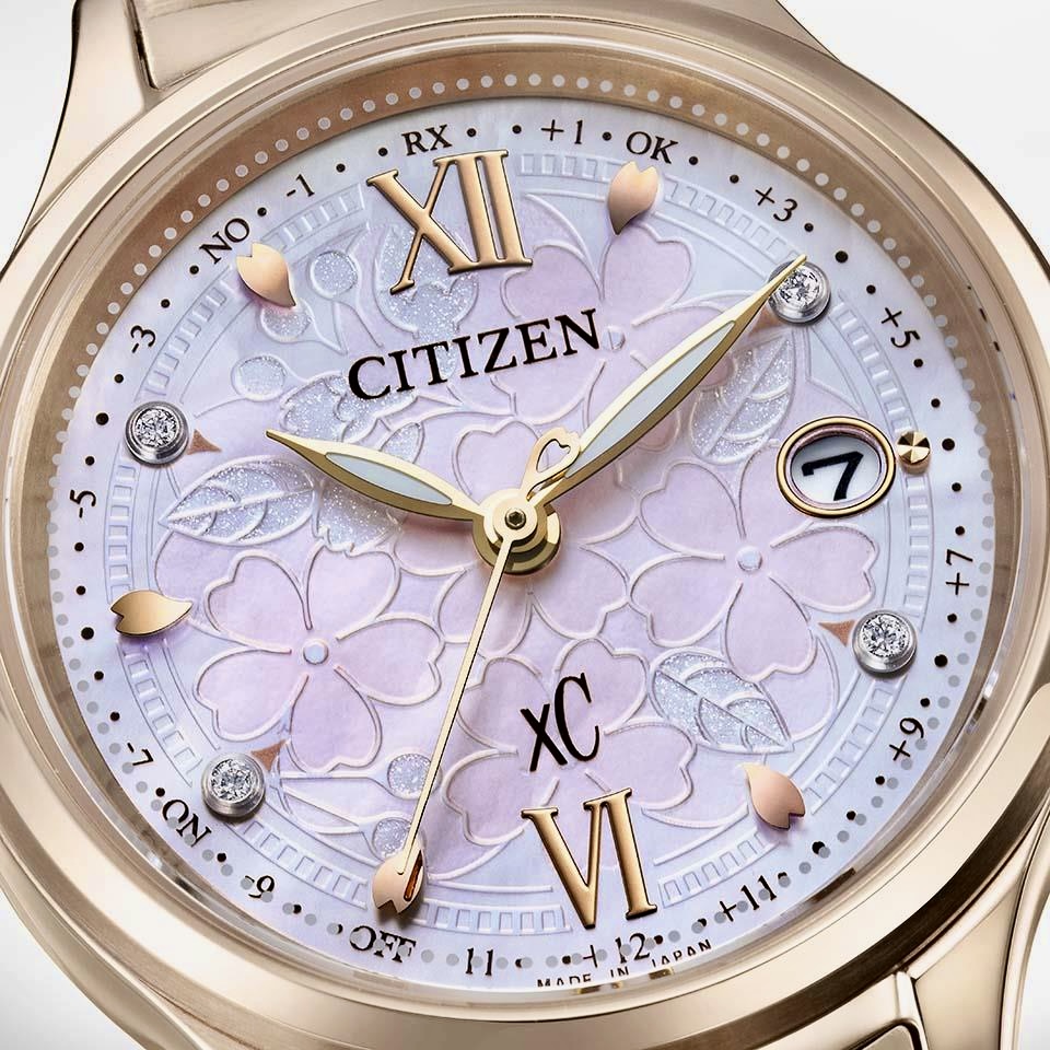 桜の花をぎゅっと詰め込んだフラワーボックスをモチーフにしたデザインです。白蝶貝の文字板へ桜の花やつぼみをエッチングで表現し、4ポイントのラボグロウン・ダイヤモンドをあしらいました。華やかに自分を開花させ、新しいスタートを飾ってほしいと想いを込めた特別感あふれる限定モデルです。