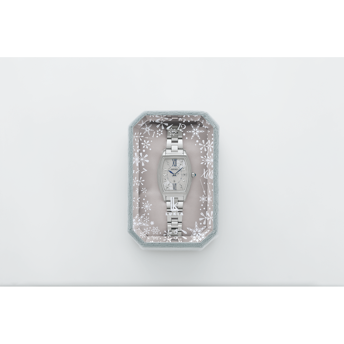 静かな冬の森が織りなす美しい景色を表現した、煌めきを纏うモデルが登場。大人でシックな配色と美しい輝きが魅力的な、ホリデーシーズンだけの限定モデルです。光に照らされて煌めく雪景色を思わせるフローズン加工のダイヤルに、雪の結晶をモチーフにした繊細なデザインをあしらったモデルです。インデックスや針にはひし形を用い、輝く結晶の煌めきを表現。1時と7時位置に配したラボグロウン・ダイヤモンドが、その輝きをいっそう引き立てています。