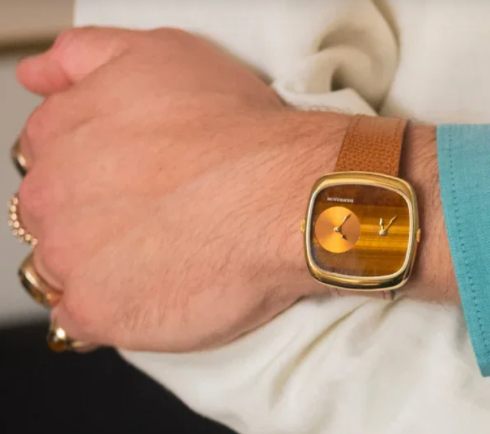 デニソンのDual Time Watchとして、「ALD Dual Time Tiger Eye & Gold Sunray In Gold PVD」は誕生しました。