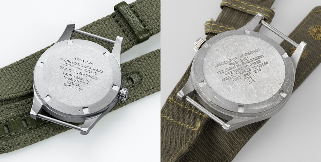 方や、素材等のスペックは現代にアップデートされ、アクリル製ボックス型風防には耐傷性を高めるハードコーティングと、視認性向上の指紋防止処理が施されている。また、ハミルトンとしては初めて、時分秒針とダイアルの三角マーカーに、スーパールミノバ®︎のオールドラジウムカラーでは最高性能グレードの、“Grade X2”を採用。このほか10気圧(100m)の防水性能と、標準パワーリザーブ80時間を有する手巻き式ムーブメント、Cal.H-50等も用意されている。このような歴史の徹底検証とアップデートで米建国250周年を祝う「カーキ フィールド メカ 36mm ジャパン エディション」は、2026年のみの限定生産。時計愛好家の勘所を押さえた設計ながら、最後に驚くべきは価格だ。時計価格の高騰が普通の状態となった上に円安が拍車を掛ける昨今、これは価格までも含めてすべてが、“逸品”と言って過言ではない。(参考メディア:『Chronopedia』)