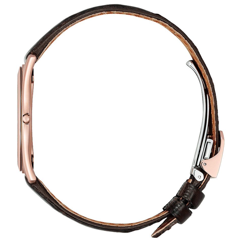 AQ5012-14A キャリバーNo.:8845 動力:光発電エコ・ドライブ 精度:±15秒/月 持続時間:光発電7ヶ月 重量:22g 厚み:4.5mm ケースサイズ:36.6mm ケース素材:ステンレス ケース表面処理:デュラテクトピンク(ピンクゴールド色) バンド素材・タイプ: ワニ革 三ツ折れプッシュタイプ バンド幅:19.0mm バンド調整可能サイズ:152〜198mm ガラス:サファイアガラス(クラリティ・コーティング) 防水性:日常生活用防水 機能: 充電禁止温度検出機能 過充電防止機能 フル充電時約7ヶ月可動 原産国:日本製 メーカー保証: 1年間メーカー保証 MY CITIZEN シチズン オーナーズクラブご登録により3年間 至福の着け心地は大切な時間のために じっくりとただ静かに、自分だけの時間を愉しむ大人たちへ。 驚きの薄さ、1mmムーブメントがもたらす何物にも代えがたい心地よさをその腕に。 気品ある装いと快適な装着感を追求し、大人たちの時間に寄り添うモデルが登場。 6時位置に小秒針表示を配置。薄さの中に漂う、気品ある表情が特徴です。 薄さの中に漂う、気品ある表情。 Eco-Drive One史上初めて、6時位置に小秒針表示を配置。 無駄を削ぎ落とした薄型フォルムとの調和を追求し、インデックスは短くするなど、ミニマルな要素でまとめました。 そのほか、柔和な表情を生み出すケース側面を曲面で丸めた形状や、繊細でシャープなカットに仕上げたインデックス、鏡面仕上げと砂地艶消し仕上げの2つの異なる処理を施した時分針など、エレガンスな雰囲気を表現する造り込みがディテールにまで息づいています。 日本の伝統との出会い。 Eco-Drive One初となる日本の伝統工芸「土佐和紙典具帖紙(とさわしてんぐじょうし)」を文字板に採用。 角度によって表情を変える、和紙独特の風合いを愉しめます。 また、美しく繊細な和紙の白と、華やかなゴールドを配したインデックスや時分針、ケース&ベゼルを彩るデュラテクトピンクとのコントラストもお愉しみください。 心地よさの理由は細部にも。 美しく研ぎ澄まされた極薄フォルムに加え、ケースは身に着けやすい36.6mmの小径サイズに。 さらに、ケース裏を腕に沿うような形状に仕上げ、身に着けて心地よい装着感を徹底して追求しています。 世界最薄の1mmムーブメント。 至福の着け心地のベースとなるのが、89個ものパーツを収めた、厚さわずか1mmの極薄ムーブメントです。 Eco-Drive Oneの名前には、1mmに持ちうる技術と技能の全てを注ぎ込んだ、技術者たちの誇りと情熱が込められています。 ※アナログ式光発電ムーブメントとして。2021年12月現在。 ご購入・お問い合わせはこちら その他の「エコ・ドライブ ワン」シリーズをお探しの方はこちら オンラインショッピングページ