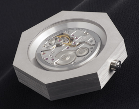 キャリバーの自社開発、製造に2005年から取り組んで来たカール F. ブヘラ。ムーブメントの縁を回転するローター「ペリフェラルローター」を開発した。これだと時計をぶつけた時のショックでローターが軸から外れる心配はほとんど無い。ローターはセラミックのボールベアリングで支えられ、両方向に回転するため非常に巻き上げの効率も良いのも特長の1つ。これまでも同型の自動巻ムーブメントは存在したが、このCFB. A1000はベアリングのローラーに高い耐久性と対摩耗性を誇るカーボン被膜を取り入れ、実用性に富んだタフさを実現している。このムーブメントを搭載したモデルが発表されるのは2009年のバーゼルワールドの予定。