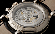 「フリーダム」の名に象徴されるように、半完成ムーブメントを供給するエボーシュメーカーに依存することから解き放たれた、フランク・ミュラー初の完全自社製キャリバーを搭載したフライバッククロノグラフモデル。トルクロスの少ない垂直クラッチ方式で、操作感のスムーズなコラムホイールを採用した高級仕様ながら、サイズをわずか25.6mmに抑えた汎用性の高いムーブメントだ。今となっては新鮮なラウンドケースに納められ、ブランド初期からのファンのハートにも刺さりそうなシルエットに仕上がった。2005年の発表以来、待ちて久しい本格的な製品化であり、写真のローマン数字のほかにブランドアイコンでもあるビサン数字のヴァリエーションも展開する。